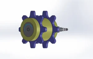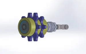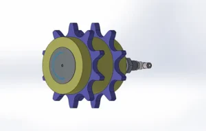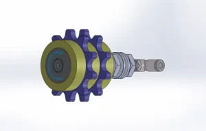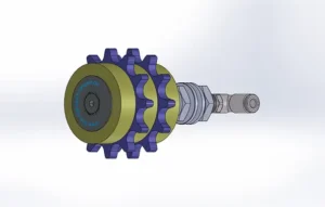 The long, straight threaded axle allows the chain lubrication pinion to be adjusted in axial position over a wide range.