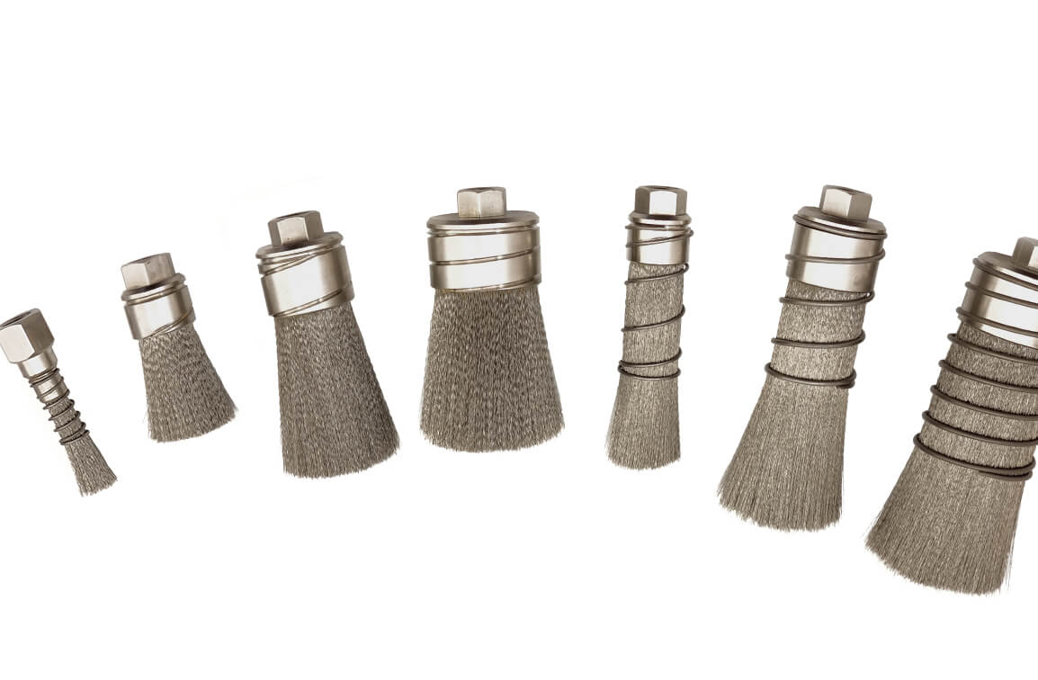 Es ist die Herstellung dieser Schmierpinsel oder Schmierbürsten mit hochflexiblen Edelstahlborsten, die dank der besonderen Edelstahllegierung und der feinen Wellen im Borstenmaterial sehr langlebig im Einsatz sind. Weiter ist es die besonders hochwertige Verklebung der Borsten in der Fassung, welche diese Schmierpinsel zum idealen Applikator der Kettenschmierung im Lebensmittelbereich macht.