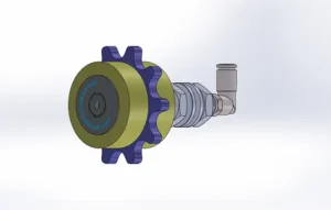 Die Ausführung mit gerader Achse ist dabei besonders für die Montage an Blechen, Gehäusen oder Montagewinkeln geeignet. Eine weitere Befestigungsoption für diese Schmierritzelausführung ist auch der optional erhältliche Federwinkel.