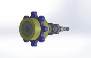 Die lange, gerade Gewindeachse erlaubt es das Kettenschmierritzel in axialer Position in einem weiten Bereich zu justieren.