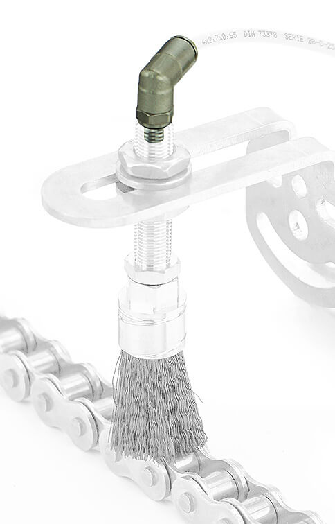 Steckverschraubungen wie sie aus der Pneumatik bekannt sind in einer Vollmetallausführung mit hochwertigen, ölbeständigen NBR-Dichtungen. Einfacher geht es nicht, Schmiergeräte wie Tropföler oder Dosieröler für die Kettenschmierung mit Applikatoren wie Schmierpinsel, Schmierbürsten, Kettenschmierritzel oder Schmierrollen zu verbinden.