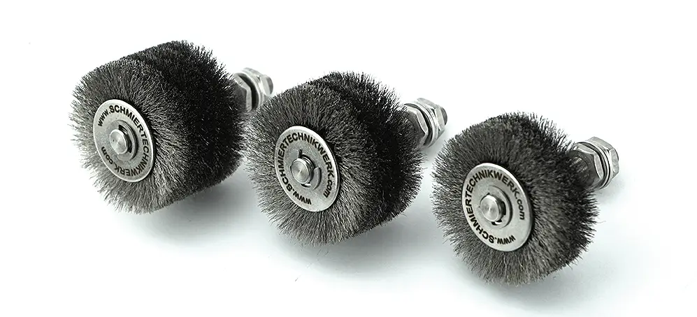 Die Herstellung dieser Schmierpinsel oder Schmierbürsten mit hochelastischen, fein gewellten Edelstahlborsten, auf einer korrosionsfreien Edelstahlwelle sowie der Einsatz von Messinggleitlagern erlaubt den Einsatz bei bis zu 300°C.